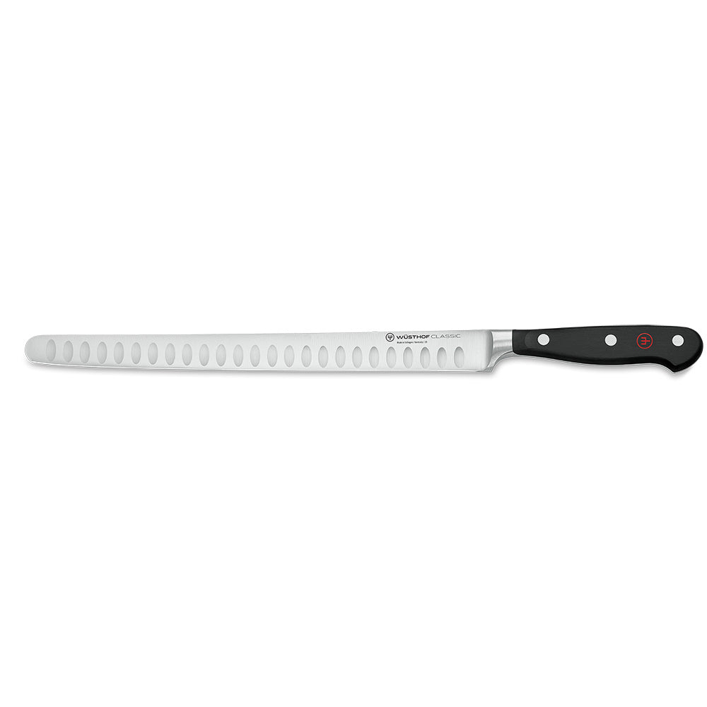 When you spend 8 hours carefully roasting a ham, the Wusthof 10” Ham Slicer is the best tool for ensuring smooth, clean, ultra-juicy slices. Render even the most tedious of slicing chores enjoyable with a hollow-ground edge that ensures meat slides right off the knife. Just the right balance between flex and rigidity adds versatility—use the Ham Slicer for carving a turkey or cutting through a juicy summer watermelon.